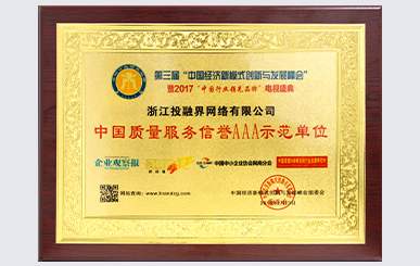 2018年1月,投融界榮獲第三屆中國經(jīng)濟(jì)新模式創(chuàng)新與發(fā)展峰會“中國質(zhì)量服務(wù)信譽(yù)AAA示范單位”榮譽(yù)稱號。