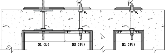 (3)單邊拉結(jié)螺桿:僅只有“連”和“拆”的功能,用于樓板等無須“對(duì)拉”的部位。