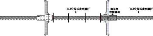 (2)止水螺桿:比“對(duì)拉螺桿”多一個(gè)“止水”功能,用于須有防水功能的部位(三段式)。